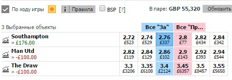 и в случае выигрыша команды из Саутгемптона игроку выплатят $172. Как вы видите, не всегда ставки на бирже будут выгоднее.